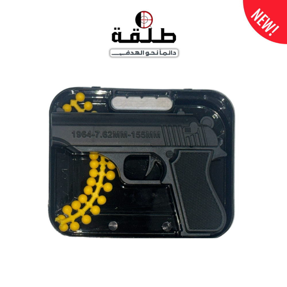 مسدس ربع الربع يتميز بحجمه الصغير وسهولة استخدامه، مع أداء قوي يطلق الخرز بدقة وسرعة. تصميمه مستوحى من المسدسات الحقيقية بلمسة شبابية فخمة، مثالي للتمارين، الترفيه أو الاستعراض ✨